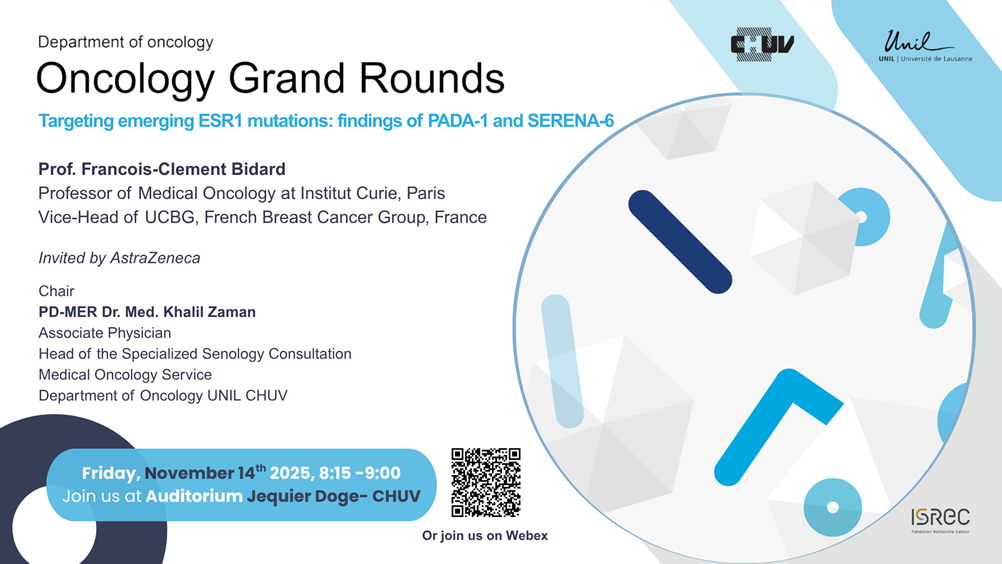 We are pleased to invite you to our next Oncology Grand Round Seminar 2025 at Jequier Doge Auditorium, Friday November 14th.